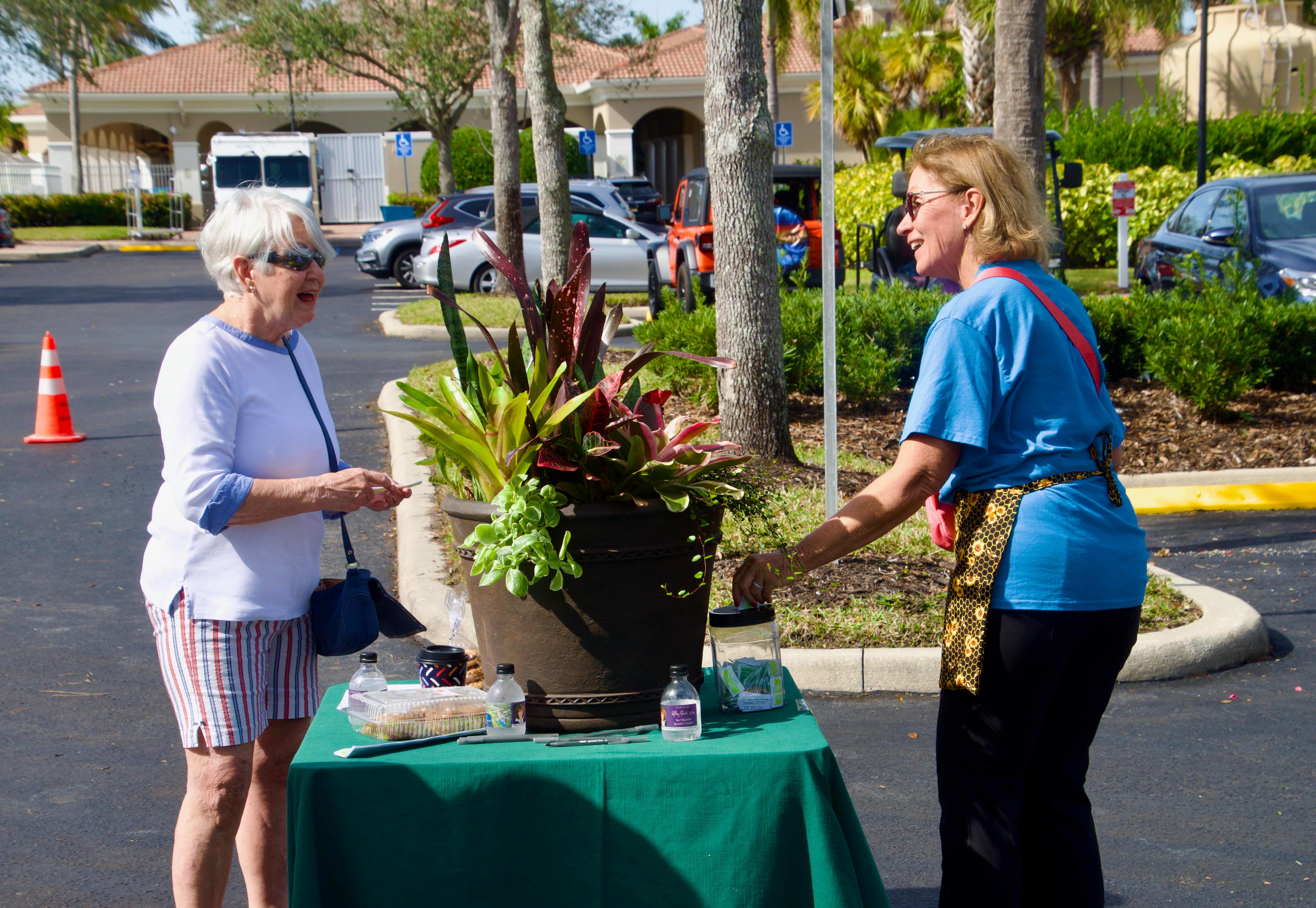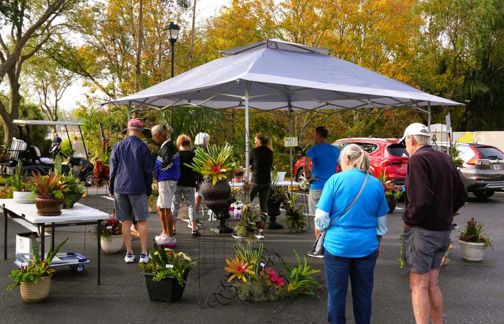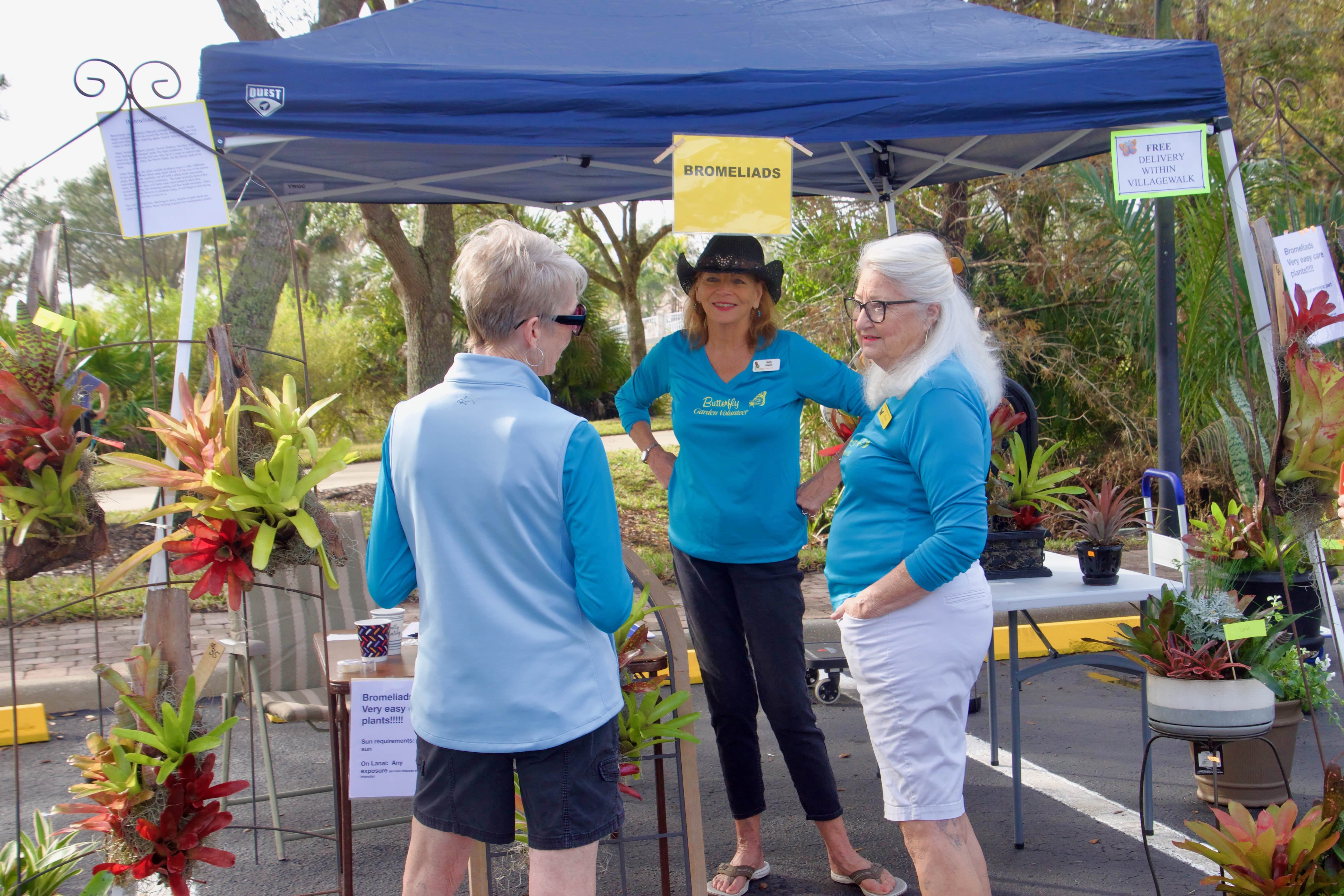 Volunteers plant up specialized combo pots, offer select herbs, succulents, colorful annual flower bowls, and creative artistic arrangements made using a variety of bromeliads for sale to all VillageWalk residents and friends. In addition, dozens of volunteers bake cookies, homemade breads, and other pastries for our customers to purchase and enjoy with a cup of coffee while they shop our Plant Sale collection.