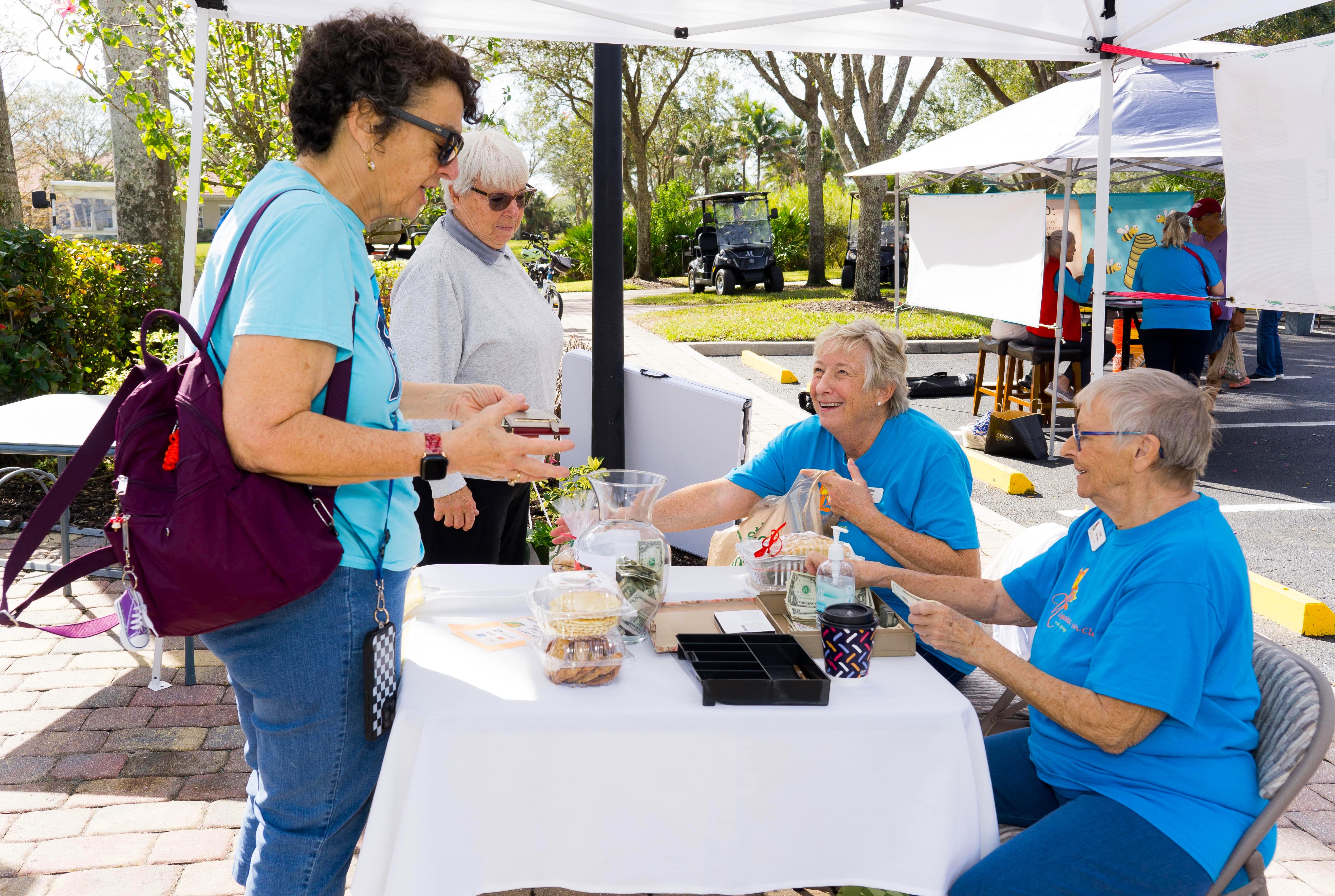 Selling plants, baking goodies, and having fun for the benefit of the VillageWalk Garden Club’s various programs and activities.
